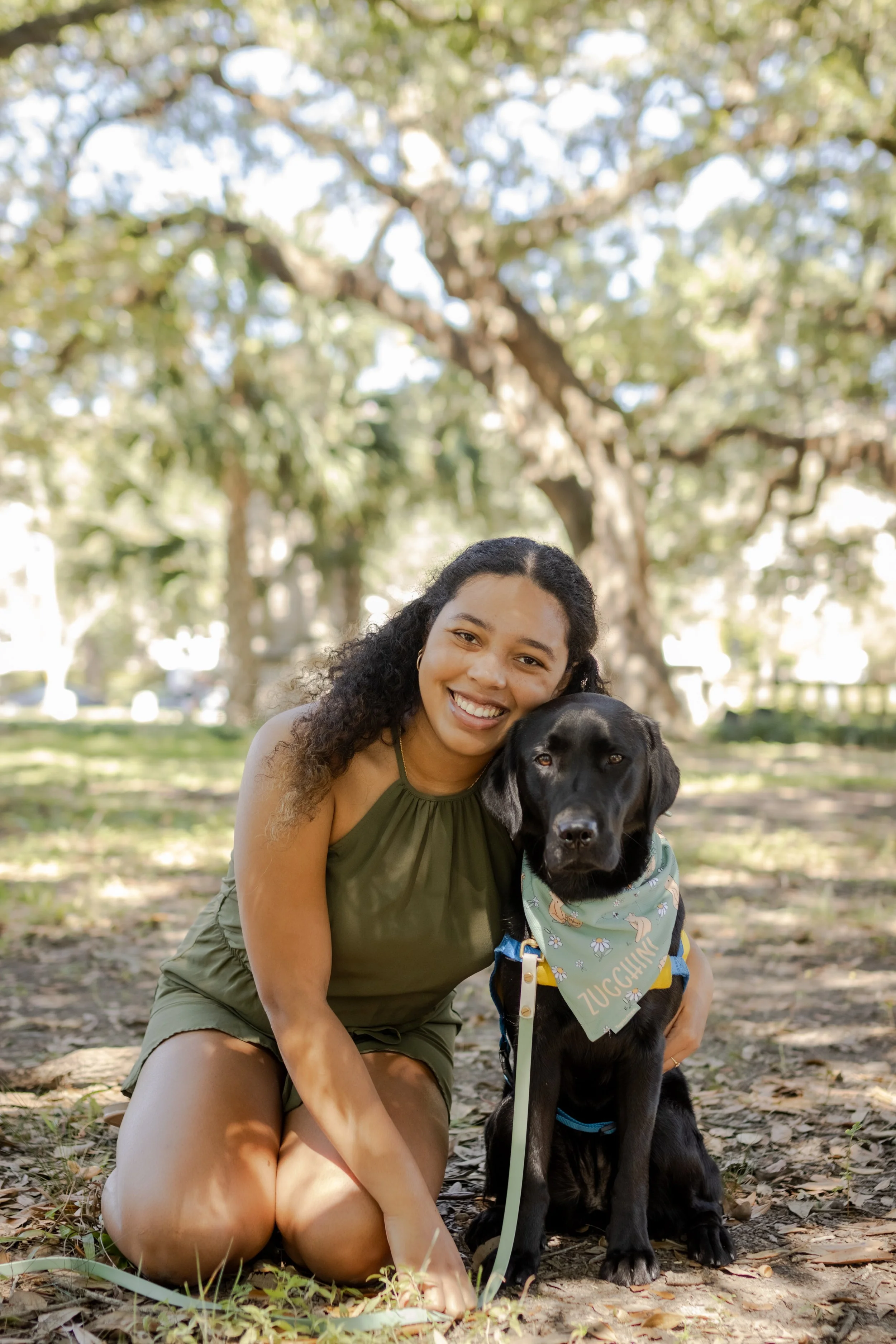 Payton and her service dog in training, Zucchini