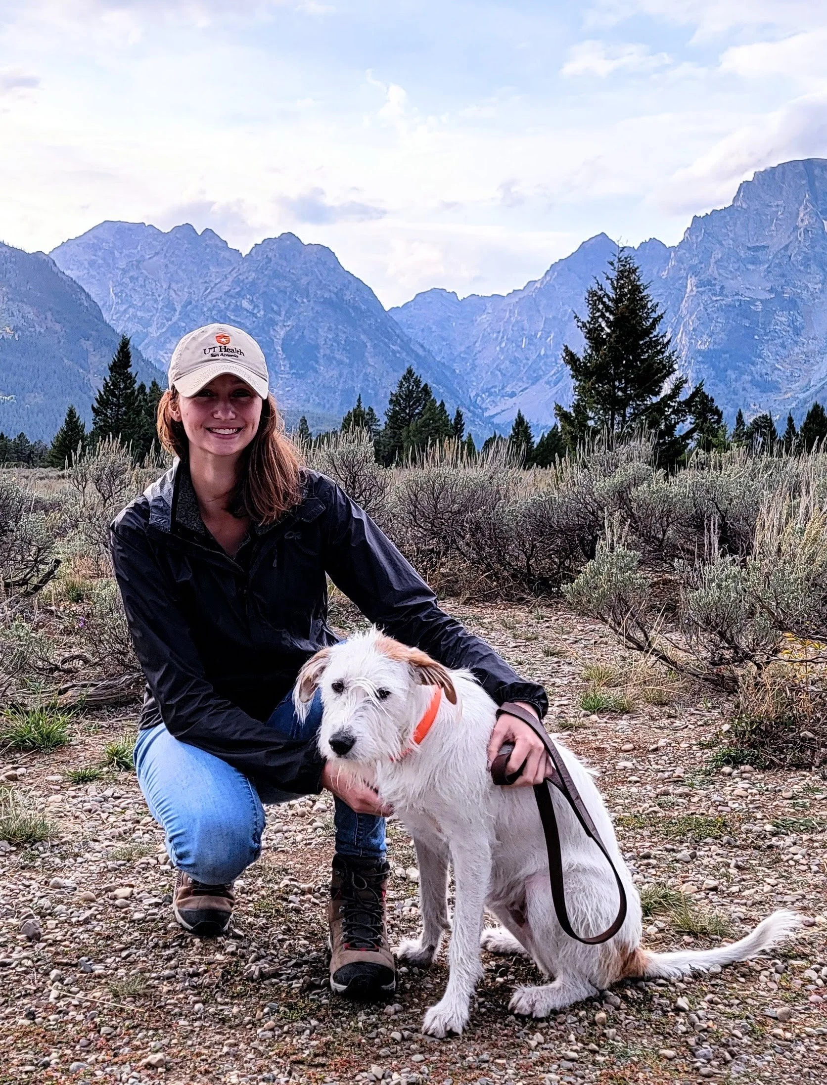Ashley and her dog, Calvin, conquering the Grand Tetons!